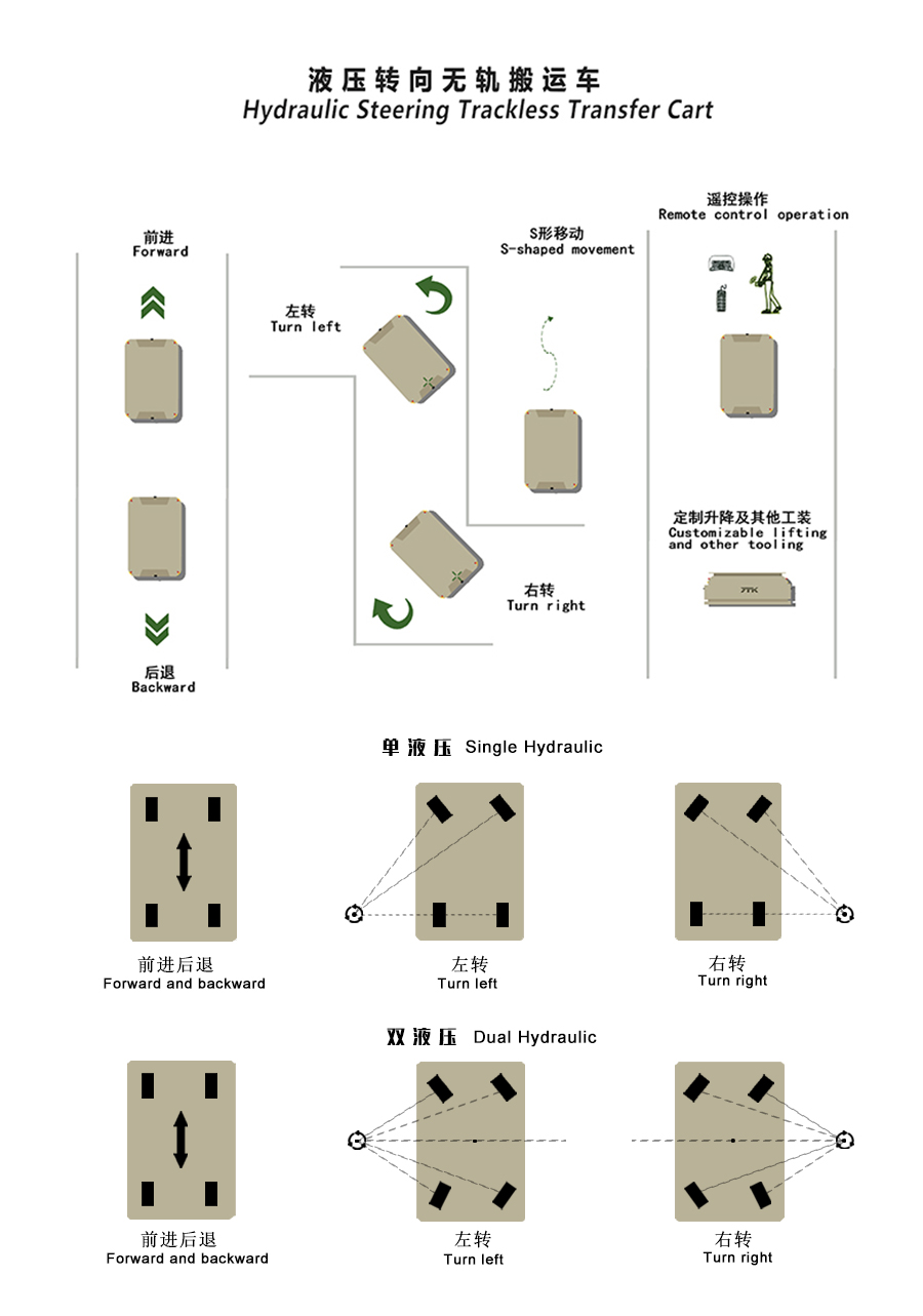 Heavy duty hydraulic steering trackless transfer vehicles are mainly suitable for the heavy industry sector, with core application industries including: